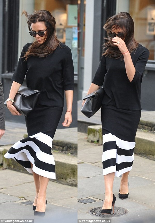 Victoria Beckham bận rộn khi vừa phải làm việc và chăm sóc 4 đứa con nhỏ nhưng không vì thế mà cô bỏ bê bản thân. Nhà thiết kế luôn ăn mặc rất phong cách khi ra phố.