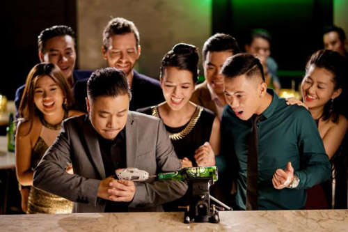 Victor Vũ không những chinh phục thành công thử thách do bậc thầy nấu bia toàn cầu của Heineken đặt ra khi không tự mình mở nắp chai làm rách nhãn giấy bạc, mà đồng thời vẫn có thể thưởng thức được hương vị bia đẳng cấp này trong sự thán phục của mọi người.
