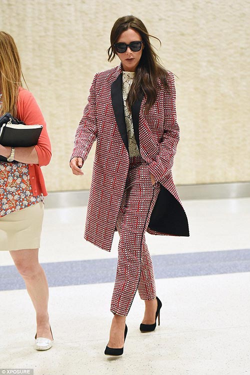 Bà Beck khiến nhiều fan tròn mắt vì mặc nguyên cây vest vải dạ ở sân bay John F.Kennedy hôm cuối tuần vừa qua.