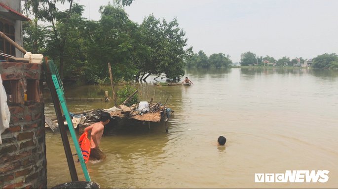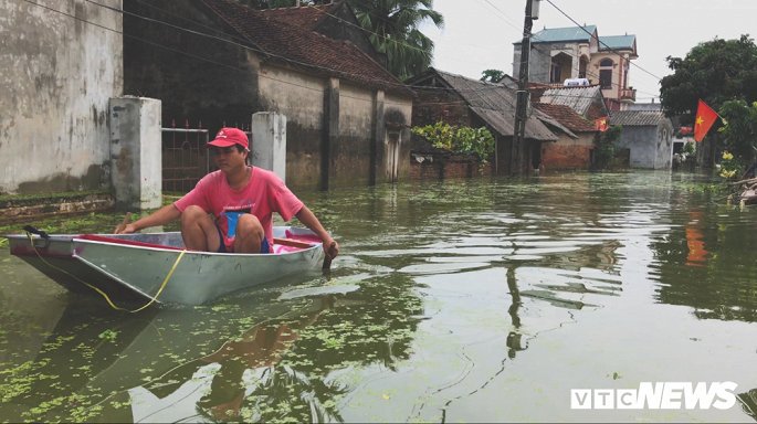 Đến hôm nay (5/8), nước ngập tại huyện Chương Mỹ (Hà Nội) đã rút bớt, tuy nhiên người dân vẫn đi lại chủ yếu bằng thuyền, nhiều người phải đi trên mái nhà để lấy hàng cứu trợ.