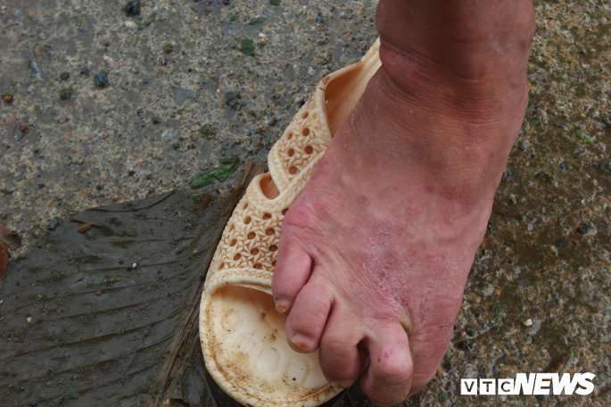 "Nước bẩn ăn chân, chúng tôi bôi thuốc cứ gần khỏi mà lội nước là bệnh lại tái phát", một người dân cho biết. (Ảnh: Star Tuấn- Mạnh Đoàn)