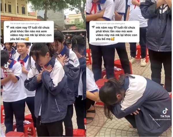 Có nhiều em học sinh rất thương cha mẹ, nhưng vì nhiều lý do không dám bày tỏ cảm xúc với gia đình. Hiện tại video này đã bị khóa bình luận vì khi đăng lên TikTok bị giới hạn thời gian nên đã nhận về nhiều bình luận tiêu cực. Có những bạn dù đã có con cái tầm 1-2 tuổi nhưng vẫn bình luận rất khó nghe, rằng đây chỉ là khóc giả trân, khóc giả vờ thôi".