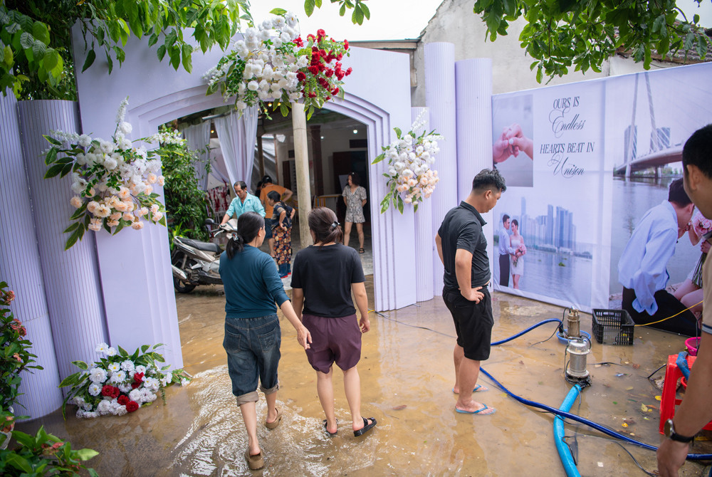 Tuy vậy, khi đón dâu về đến nhà, Thành Trung vẫn không khỏi bất ngờ khi thấy nước ngập cả bàn chân. Khách khứa đi ủng, dép lê, bì bõm lội nước đến ăn cỗ.
