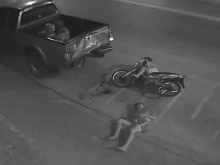 Từ đoạn video do hệ thống CCTV quay lại có thể thấy trong khi chiếc xe bán tải đang đỗ bên vệ đường, 2 nam thanh niên không đội mũ bảo hiểm, di chuyển trên chiếc xe máy đã lao đi với vận tốc nhanh chóng mặt.