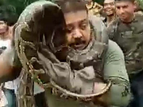 Sau đó, con trăn đã được giao lại cho cơ quan chức năng mang ra khỏi khu vực.