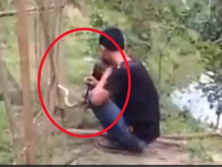 Thanh niên "liều mình" dùng tay không bắt rắn dài 2 mét