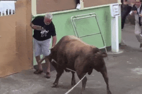 Trong clip, một viên cảnh sát đang làm nhiệm vụ điều tiết giao thông trên đường thì một con bò đực lững thững đi tới. Ngay sau đó, nó bất ngờ nổi điên, húc văng nam cảnh sát lên không trung.