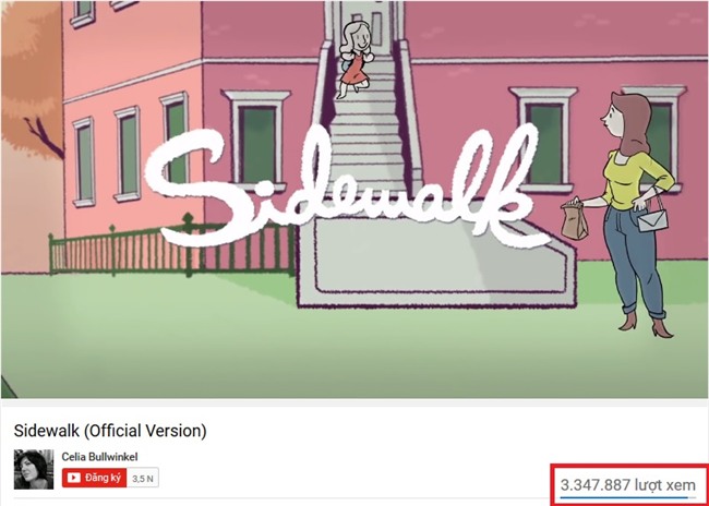 Tài khoản Youtube của Celia có hơn 3,5 nghìn lượt đăng ký và đoạn phim ngắn "Sidewalk" nhận được hơn 3 triệu lượt xem.