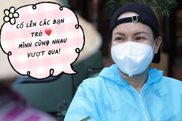 Nói chung, mọi người trong ekip của tôi đã đuối hết rồi, nhưng chúng tôi vẫn tiếp tục đi từ thiện bình thường. Bây giờ, tôi sẽ mang đồ tới quận Nhà Bè, có 4 tấn rau và hột vịt, 4000 hộp sữa, cá hộp, 2 tấn gạo, có cả thuốc sốt, dầu xông, tỏi, sả.