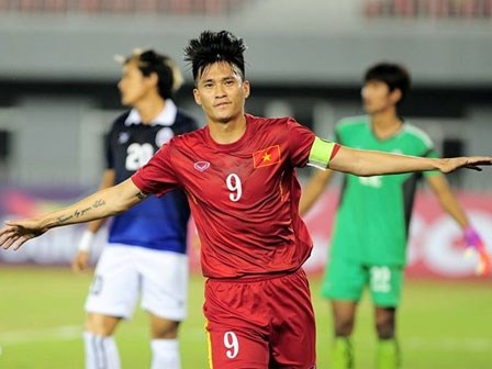 Tiền đạo Công Vinh ghi bàn thứ 51 cho đội tuyển Việt Nam sau khi sút tung lưới Campuchia ở lượt trận thứ ba thuộc bảng B tại AFF Cup 2016.