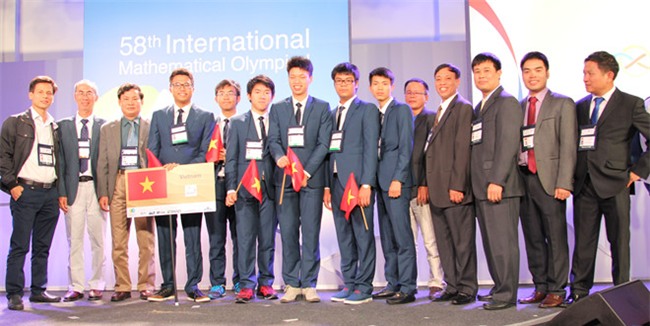 | Thầy và trò đoàn Việt Nam dự IMO lần thứ 58 năm 2017. Ảnh: Bộ GD&ĐT. |