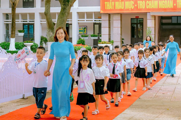 Cô và trò Trường Tiểu học Liên Bảo (TP Vĩnh Yên). Ảnh: Trường Liên Bảo