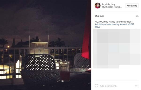 Thông qua đặc điểm nhận dạng là chiếc nhẫn và vòng tay giống hệt giữa hai bức hình, người hâm mộ càng có cơ sở kết luận người đàn ông đang ở bên Hoàng Thùy Linh trong ngày Valentine chính là Vĩnh Thụy. Dựa vào một số thông tin từ trang cá nhân của cả hai người, có thể nhận ra Vĩnh Thụy và Hoàng Thùy Linh đang có chuyến lưu diễn xen lẫn hẹn hò trên đất Mỹ. Họ dành thời gian du lịch qua nhiều bang khác nhau ở xứ sở cờ hoa.