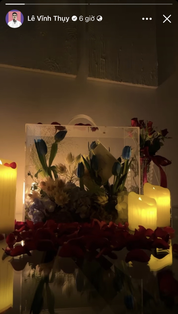 Cụ thể, Vĩnh Thuỵ và bà xã cùng ăn mừng ngày 20/10 tại nhà riêng. Nam siêu mẫu thể hiện sự ngọt ngào khi dành tặng vợ hộp hoa lung linh và sang trọng. Không chỉ thế, Vĩnh Thuỵ còn được khen ngợi vì tự tay vào bếp nấu nướng, bày trí dĩa thức chỉn chu để chiêu đãi bà xã trong ngày đặc biệt. Chỉ với những chi tiết nhỏ này cũng có thể cảm nhận được Vĩnh Thuỵ là người đàn ông của gia đình, rất cưng chiều và dành sự lãng mạn cho "nửa kia".