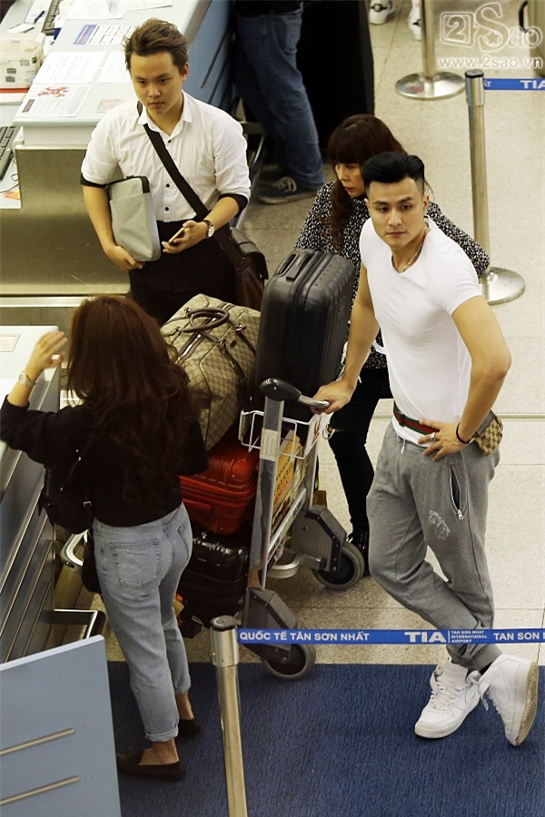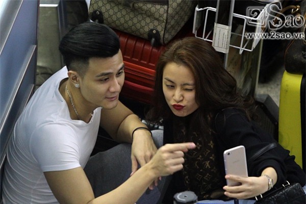 Trong khi chờ làm thủ tục, Vĩnh Thụy và Hoàng Thùy Linh trò chuyện khá vui vẻ anh cũng không