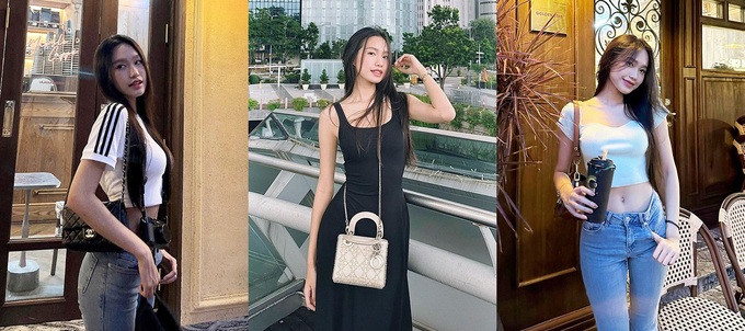 Doãn Hải My thích mặc áo crop top (áo dáng ngắn) nhằm khoe khéo vòng eo thon gọn. Những mẫu váy thun ôm cơ thể cũng được bạn gái Đoàn Văn Hậu ưu ái. Túi xách hàng hiệu thường xuyên góp mặt trong thời trang dạo phố của Doãn Hải My. Tên một số mẫu túi xách xa xỉ cô sở hữu như Chanel Classic Flap (size nhỏ 9.200 USD, khoảng 218,5 triệu đồng; size trung 10.200 USD, khoảng 242,3 triệu đồng), Lady Dior (5.500-7.000 USD, khoảng 130,7-166,4 triệu đồng, tùy kích cỡ), Louis Vuitton Dauphine MM (3.800 USD, khoảng 90,3 triệu đồng) (Ảnh: @_doanhaimy).