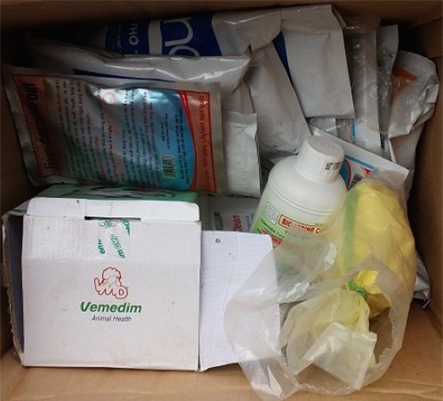 Trong vai những người đi tìm hiểu mô hình nuôi lươn, chúng tôi được người dân giới thiệu đến nhà ông Hồ Văn Lương, xóm 9, xã Lý Thành (huyện Yên Thành). Anh Trung, con trai ông Lương dẫn chúng tôi vào xem các bể nuôi lươn theo mô hình không bùn. Có khoảng chục bể xây bằng gạch, bên trong lươn được nuôi với mật độ khá cao. Tương tự hộ ông D ở Hưng Nguyên, lươn ở đây cũng được nuôi bằng cách mua con giống bắt từ ruộng, sau đó cho ăn thức ăn chế biến sẵn từ cá, ốc. Nước được hút từ cái hồ gần đó, yêu cầu phải thay thường xuyên. “Nuôi lươn không đơn giản đâu, nhiều người cũng về đây học hỏi, xây bể nhưng sau đó phải bỏ”, anh Trung nói. Theo anh Trung con lươn rất dễ bị bệnh, gồm nhiều loại bệnh phức tạp như lở loét, tiêu hóa, đỏ đít, rồi bị gan, đen một vùng trước bụng... Để phòng chữa bệnh cho lươn, anh Trung phải nhập thuốc từ Đà Nẵng về, gồm rất nhiều loại như thuốc sát trùng, thuốc kháng sinh... Thuốc được pha, tạt vào nước trước hoặc sau khi thay bể, hoặc trộn vào thức ăn cho lươn như thuốc tiêu hóa. Anh Trung bê ra một thùng carton lớn trong đó có nhiều loại thuốc sát trùng, kháng sinh ghi bằng tiếng Việt. “Những loại này đều được phép, không độc, giống như thuốc sát trùng hoặc thuốc tiêu hóa vậy thôi”, anh Trung trấn an.