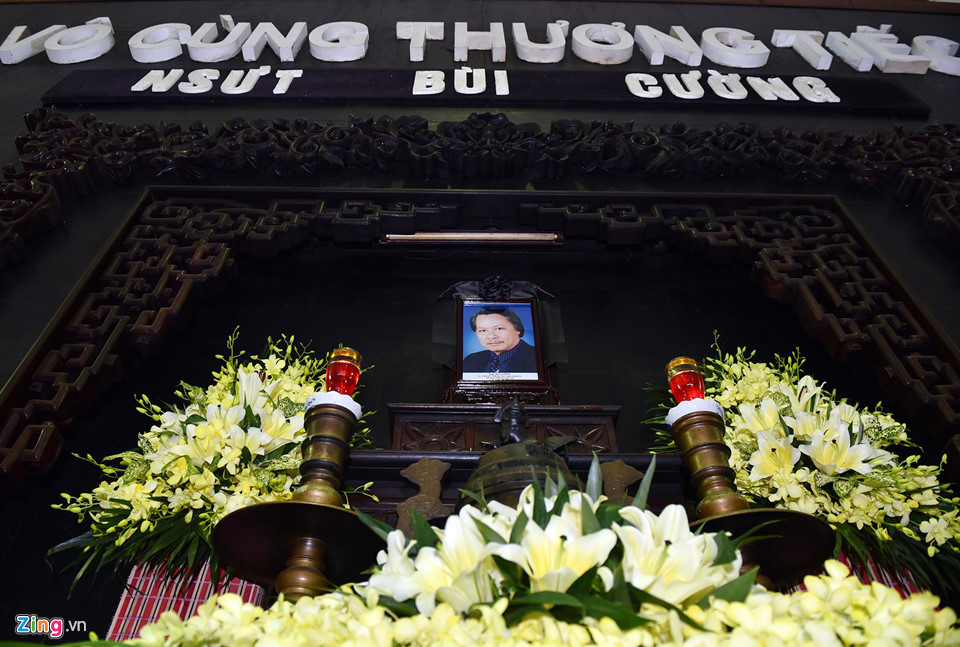 | Tang lễ của NSƯT Bùi Cường diễn ra vào sáng 7/8 tại Nhà tang lễ Bộ Quốc phòng, Trần Thánh Tông, Hà Nội. Theo thông tin từ phía gia đình nghệ sĩ Bùi Cường, lễ truy điệu diễn ra vào 8h45 và hoả táng cùng ngày tại đài hoá thân Hoàn Vũ, Hà Nội. NSND Minh Châu, người bạn học, đồng thời là đồng nghiệp của ông, có mặt từ sớm để chia buồn với gia đình nghệ sĩ quá cố. Trước đó, Minh Châu chia sẻ chị quá bất ngờ trước sự ra đi của Bùi Cường. |
