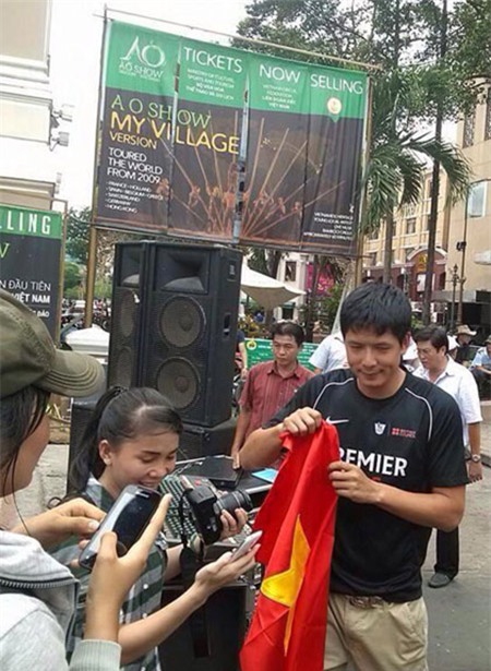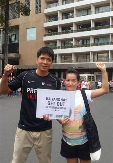 Sáng 11/5, hàng nghìn người Việt đổ bộ trước Nhà hát TP HCM biểu tình phản đối Trung Quốc đưa giàn khoan Haiyang Shiyou-981 (Hải Dương-981) vào vùng đặc quyền kinh tế của Việt Nam. Vợ chồng diễn viên Bình Minh cũng hòa trong dòng người tuần hành. Trên tay họ cầm biểu ngữ ghi dòng chữ bằng tiếng Anh yêu cầu “Đưa giàn khoan Haiyang ra khỏi Việt Nam ngay!”. |