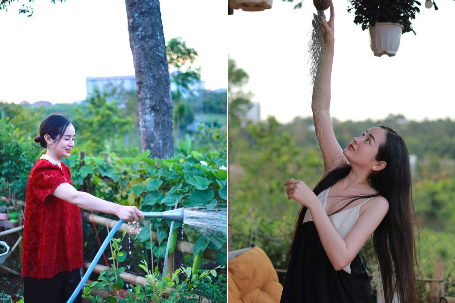 Giờ đây, cuộc sống của vợ chồng chị Nga quanh quẩn với việc trồng rau, tưới cây, thu hoạch rau, xen kẽ những lúc pha trà, nghe nhạc, cắm hoa. Ngay cả trong lúc làm việc, chị cũng thấy thư thái vì được ngồi ở nơi trong lành.