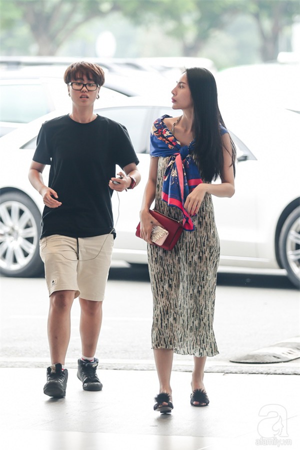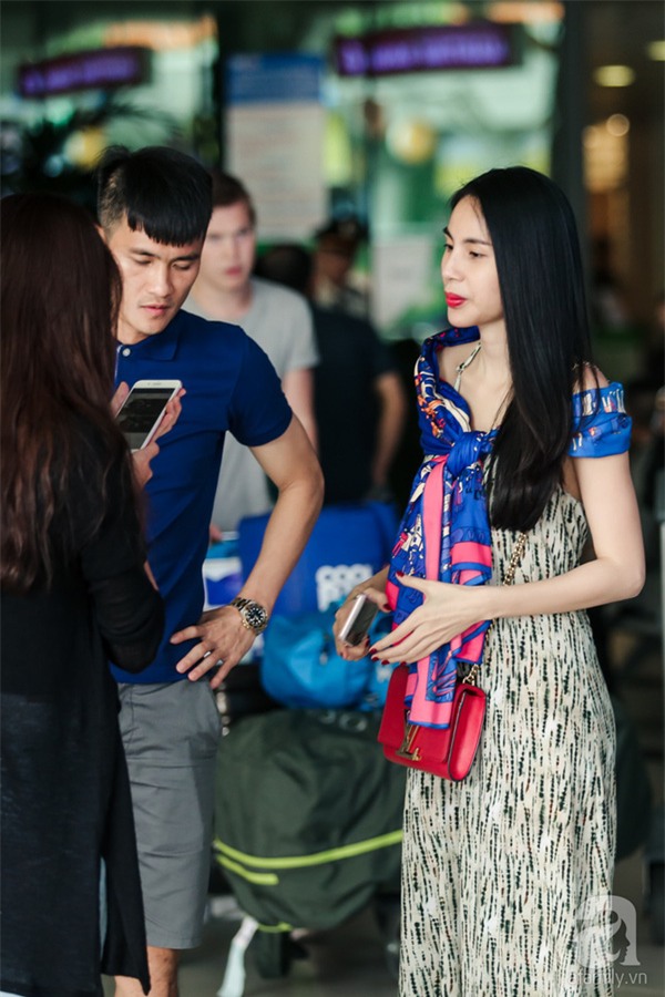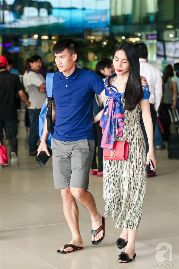 Tuy nhiên, cô không vội vàng về ngay mà nán lại sân bay Tân Sơn Nhất để chờ đón Công Vinh từ Hà Nội bay về.