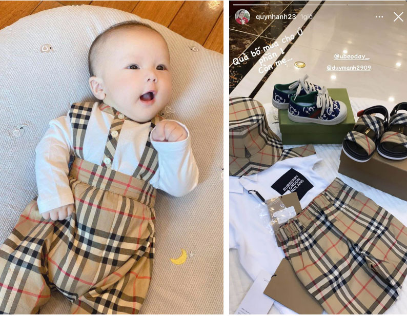 Ngay cả bé Ú cũng thường xuyên được ba mẹ dát hàng hiệu từ đầu tới chân.