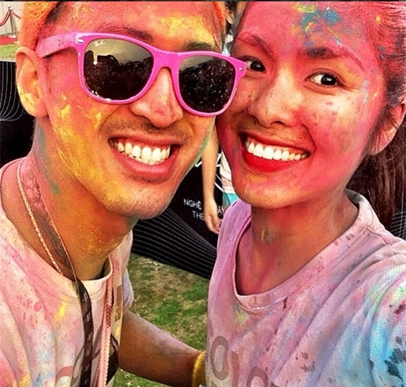 Nụ cười hạnh phúc cùng những cái ôm tình cảm dù ở bất cứ nơi đâu của cặp đôi chính là câu
