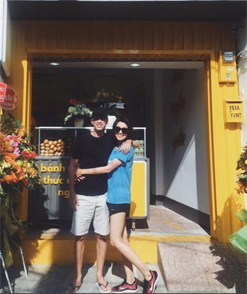 Hà Tăng và chồng ăn mặc giản dị, ôm nhau thắm thiết