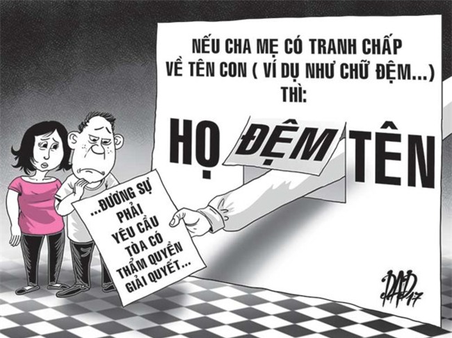 Một trường hợp khác, khi đi làm thủ tục đăng ký khai sinh cho con, ông A (ngụ quận Bình Thạnh, TP.HCM) tự ý đặt họ tên cho bé mà chưa được sự đồng ý của vợ. Mấy tháng sau, vợ ông A. phát hiện và hai bên có mâu thuẫn, tranh chấp việc đặt tên con trong giấy khai sinh.