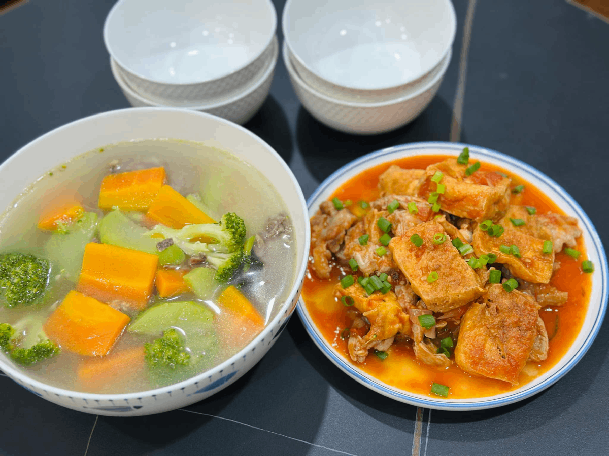 Thay vào đó, họ chỉ ăn một bát canh và một món mặn, đôi khi đơn giản là món đậu sốt hoặc trứng rán. Thịt bò, cá biển thi thoảng mới xuất hiện trong bữa cơm, chủ yếu là vào ngày cuối tuần.