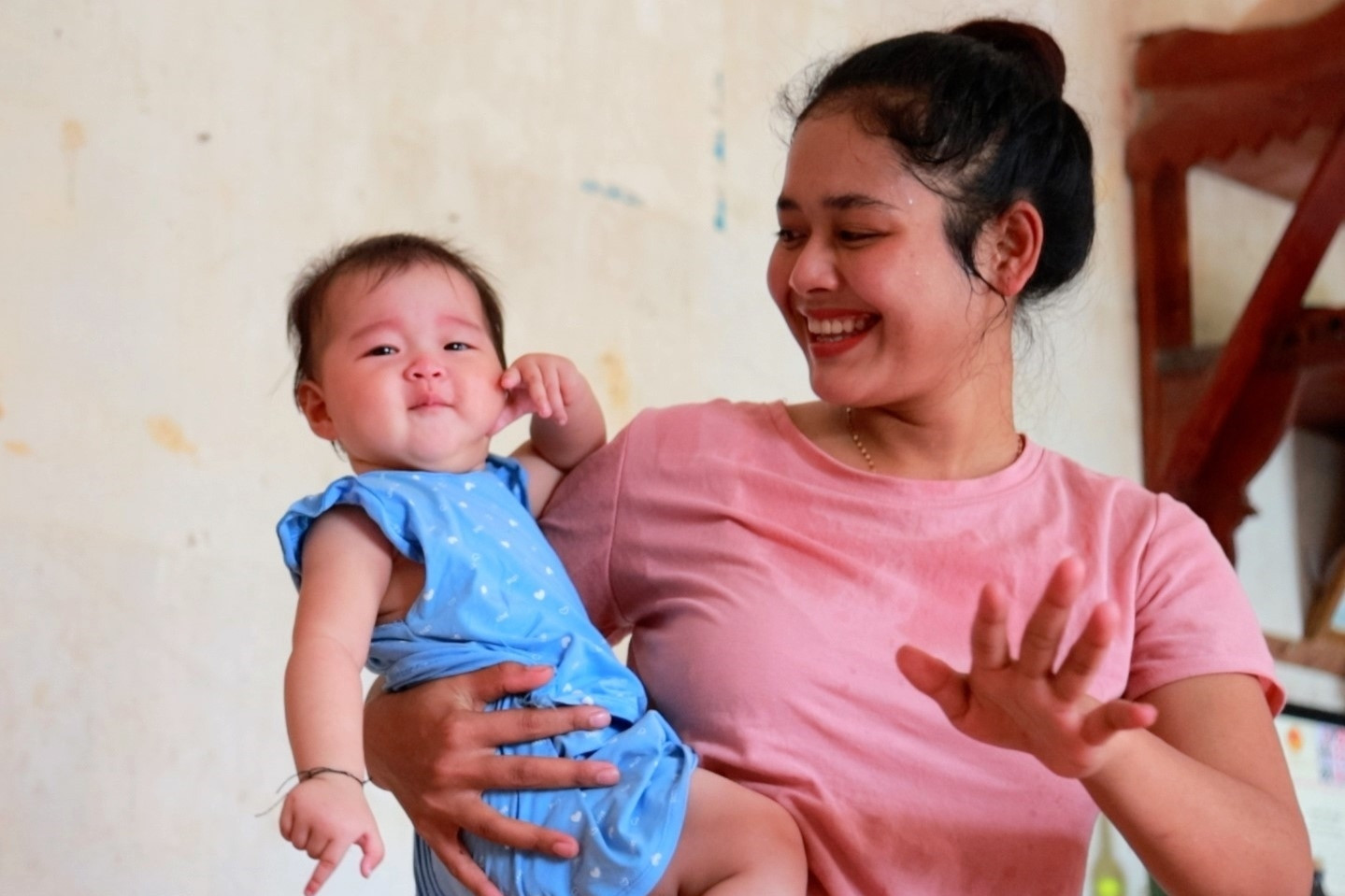 “Sung sướng, hạnh phúc... Nhìn con mà tôi vẫn không dám tin mình đã được làm mẹ. Trong phút chốc, mọi khó khăn cuộc đời dường như tan biến”, chị Ngoan nói.