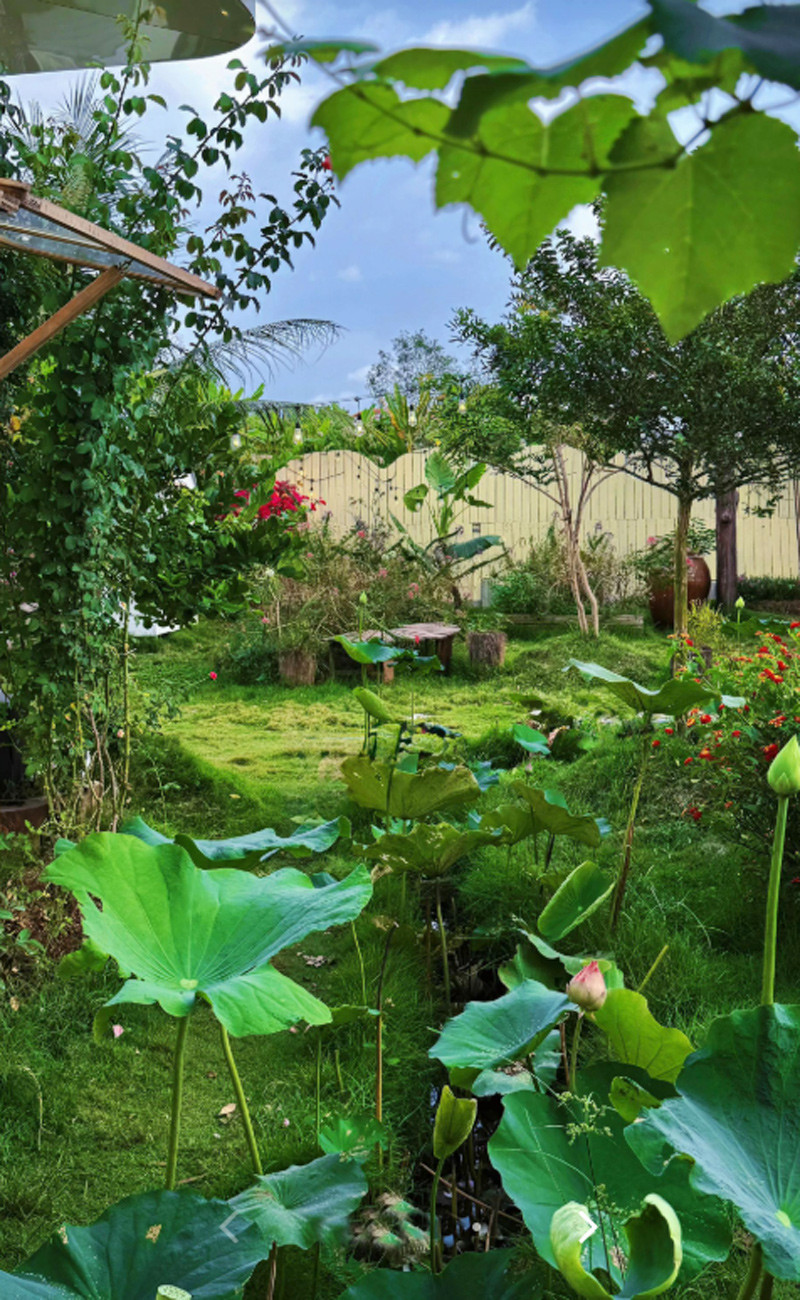 Từ khi có không gian sống mới, cuộc sống của chị Ngọc thay đổi rõ rệt. Ngoài công việc, chị dành phần lớn thời gian trồng cây, chăm hoa, nuôi gà, cá và thư giãn, đọc sách, thưởng trà giữa khu vườn xanh mát.