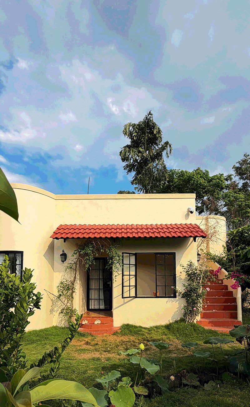 Ý tưởng đó được hiện thực hóa trong 2 năm. Lấy ao cá và vườn hoa làm vị trí trung tâm, 4 căn nhà được xây dựng xung quanh với khoảng cách vừa đủ, không quá gần để đảm bảo sự riêng tư, cũng không quá xa để đảm bảo việc sinh hoạt thuận lợi.