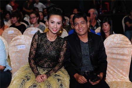 ![]() Cô chụp hình cùng đạo diễn Đức Thịnh - chồng Thanh Thúy. "Anh Phê" có mặt từ rất sớm để cổ vũ cho bà xã. |