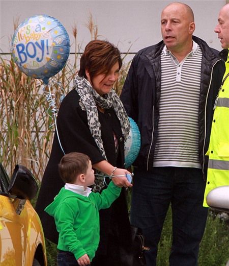 | Cậu nhóc Kai được ông bà ngoại đưa đến thăm mẹ và em. Cậu bé cầm theo những quả bóng bay, quà chúc mừng của họ hàng gửi tới mẹ Coleen và em Clay. |