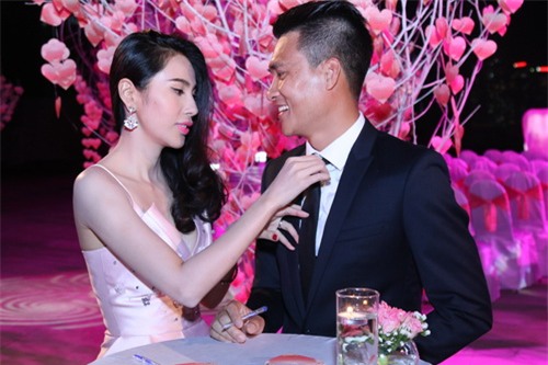 Công Vinh tận tình chăm sóc vợ.