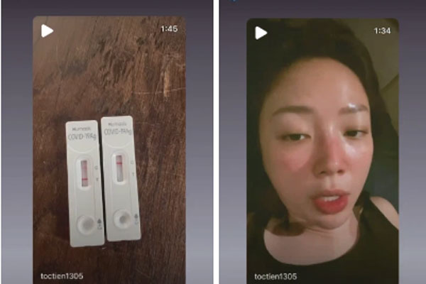Trong đoạn clip, Tóc Tiên cho biết: "Sau khi ăn Tết và tiếp xúc với nhiều F0 ở Hà Nội thì mình đã test liên tục mỗi ngày trong suốt quá trình Tết luôn. Khi về lại Sài Gòn thì như các bạn thấy là mũi phải mình không lên vạch, mũi trái đã lên 2 vạch rồi vào đúng sáng mùng 5 Tết".