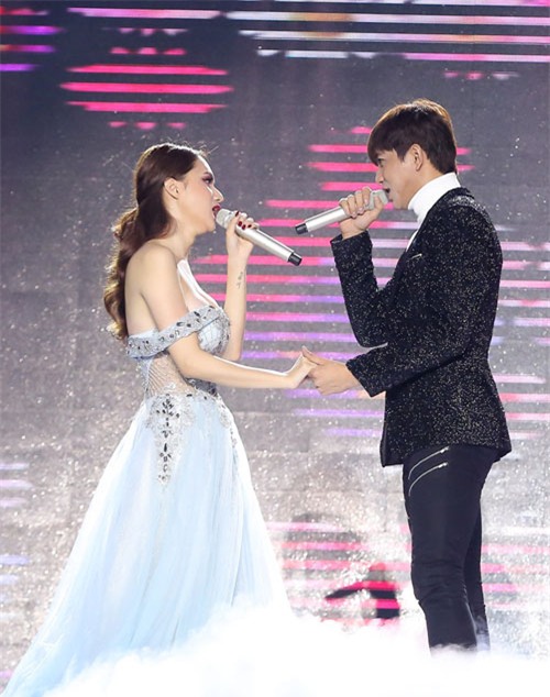 Hương Giang hát, nhảy vô cùng nóng bỏng trong tiết mục dự thiTrái ngược với màn trình diễn của Tim, Hương Giang Idol đã mang đến tiết mục rất sexy, nóng bỏng với 4 ca khúc Thiên đàng – Go Away – Happy New Year – Em không hối tiếc.