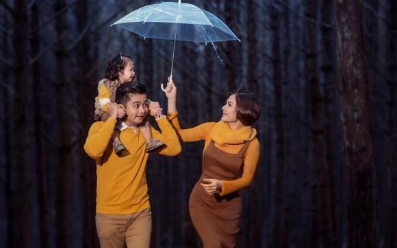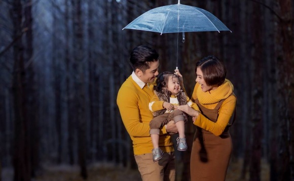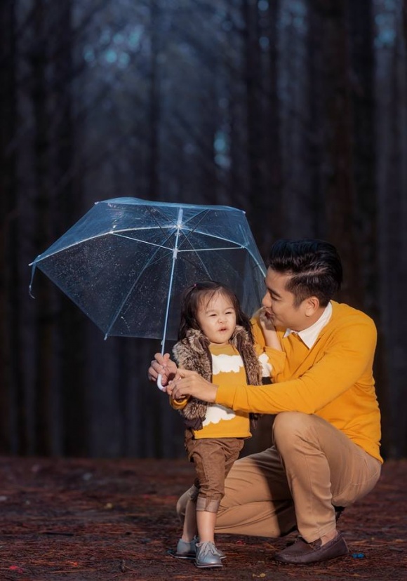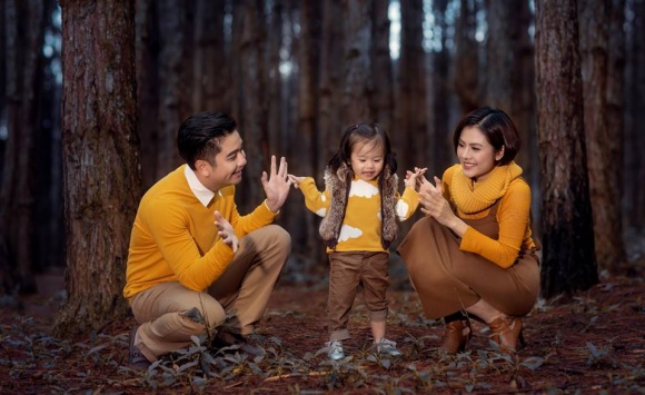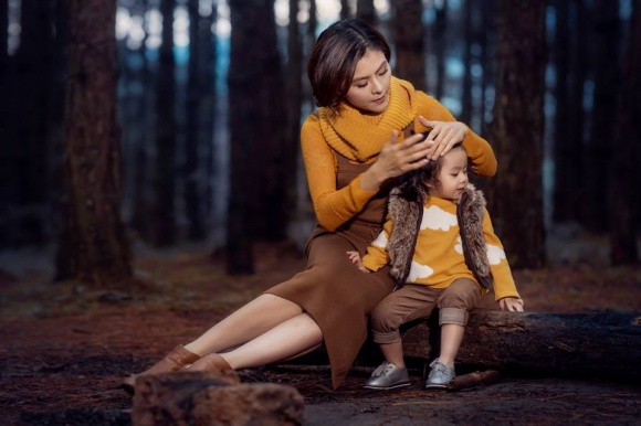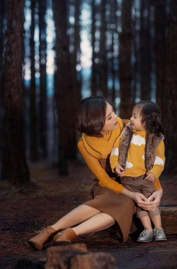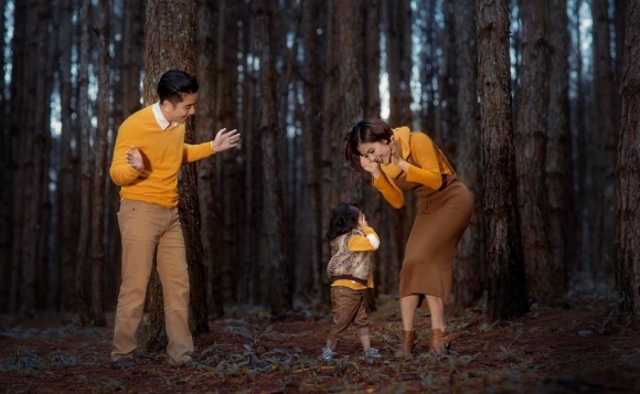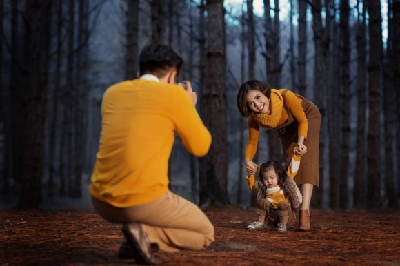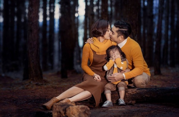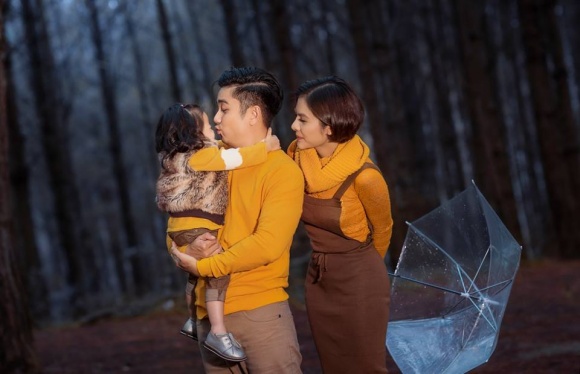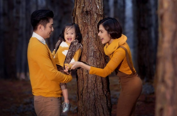 Nhân chuyến đi chơi ở Đà Lạt, vợ chồng Vân Trang cùng con gái đã thực hiện một bộ ảnh đẹp giữa khung cảnh thơ mộng trong rừng cây.