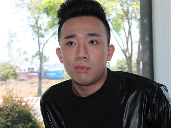 Trấn Thành mặt đượm buồn trong buổi gặp gỡ báo chí trưa 23/4. |