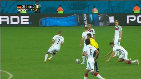 Tình huống xảy ra ở phút 88, đội tuyển Đức đã có môt pha dàn xếp đá phạt cực kỳ phức tạp với sự tham gia của 5 cầu thủ, đáng tiếc đến nhịp phối hợp của mình thì Muller lại có pha "vồ ếch" khó đỡ, khiến các đồng đội lỡ nhịp và pha đá phạt của Đức trở nên vô hại.