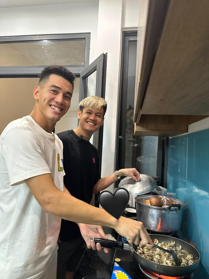 Dù không còn thi đấu cùng nhau trong màu áo CLB Bình Dương nhưng tiền đạo Nguyễn Tiến Linh và hậu vệ Hồ Tấn Tài vẫn giữ được mối quan hệ thân thiết. Mới đây trên trang cá nhân vợ hậu vệ Tấn Tài là Phạm Thị Hiếu đã chia sẻ khoảnh khắc chồng và Tiến Linh cùng vào bếp.