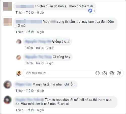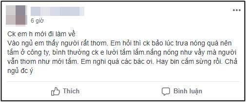 Mẹ bỉm sữa có nickname N.T. vội nói: “Vừa đi bồ bịch xong thì tắm. Trời này dù có tắm từ trưa đến tối cũng hôi mù.” Bình luận này ngay lập được 500 chị em ở đoạn sau hội thoại đồng tình, nào là: “Chắc chắn chồng em đi ngủ với nhân tình bên ngoài rồi”, “Phải tỉnh táo lên mom ơi, mình nghi là tắm ở nhà nghỉ rồi”… Trong khi đó cô vợ thì vẫn hoang mang và chưa lên tiếng hồi đáp lại lần nào.