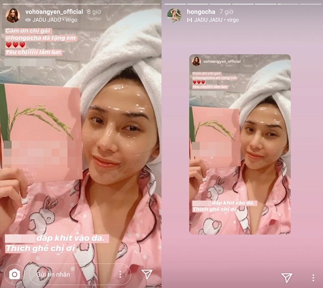 Lâu nay, mối quan hệ của Võ Hoàng Yến và Hồ Ngọc Hà luôn nhận được sự quan tâm đặc biệt của công chúng. Mới đây, hai chân dài này bất ngờ tương tác qua lại trên mạng xã hội. Cụ thể, Võ Hoàng Yến hào hứng khoe sản phẩm làm đẹp do “đàn chị” gửi tặng và không quên nói lời cảm ơn: "Cảm ơn chị gái Hồ Ngọc Hà đã tặng em. Yêu chị lắm luôn". Ngay khi được đàn em nhắc tên, Hà Hồ đã chụp màn hình và đăng tải trên trang cá nhân, như một lời cảm ơn đầy thân thiện.