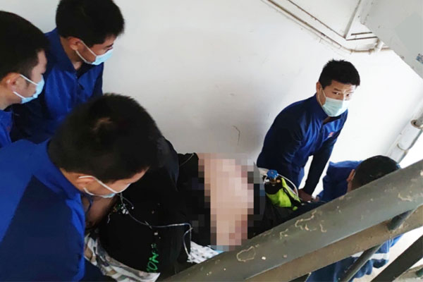 Giải cứu người đàn ông nặng hơn 150kg hôn mê bất tỉnh trên tầng 3Do người đàn ông sinh sống ở khu tập thể không có thang máy nên việc di chuyển xuống phía dưới gặp nhiều khó khăn.
