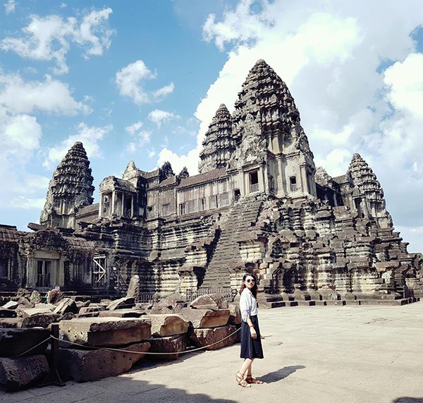 Bà xã Anh Tuấn chụp hình kỉ niệm tại Campuchia.