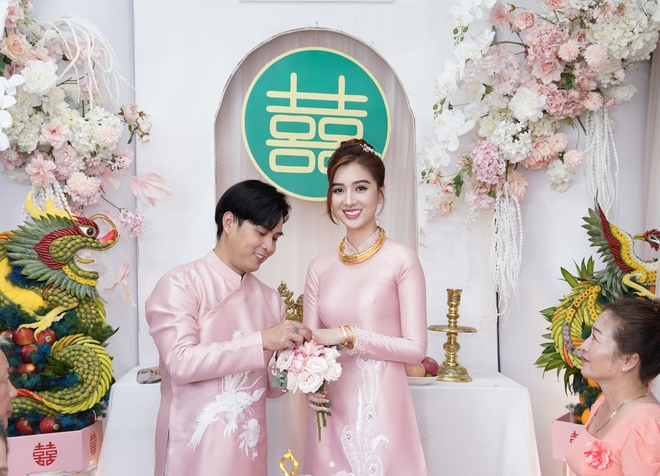 Sáng 2/8, đám hỏi của Hồ Quang Hiếu và bà xã kém 17 tuổi tên Tuệ Như diễn ra tại Cà Mau. Ngày trọng đại của cặp đôi được tổ chức đơn giản nhưng đầy đủ phong tục, lễ vật đúng với truyền thống. Chú rể Hồ Quang Hiếu diện áo dài màu hồng, đi xuồng và mang dàn tráp hoành tráng để hỏi vợ.