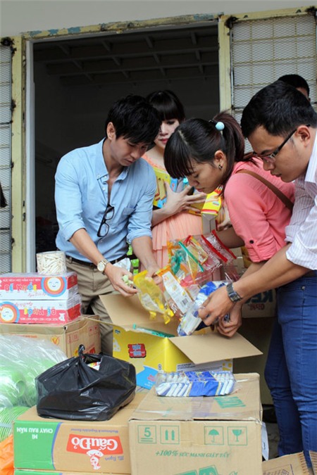 | Lý Hải kiểm tra lại những phần quà trước khi trao tặng. |