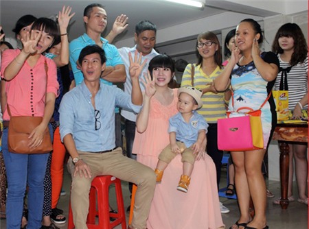 | Vợ chồng Lý Hải ghi ảnh bức ảnh kỷ niệm chung với các fan và bạn bè nhân chuyến đi từ thiện. |