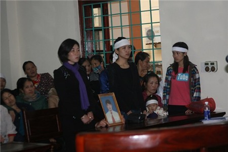 | Người nhà nạn nhân Nguyễn Tuấn Anh mang theo di ảnh nạn nhân xấu số tới phiên xử. |